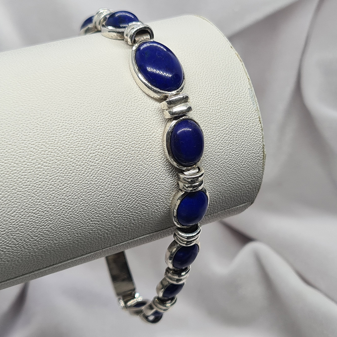 B0028 Silver Bracelet Set with 13 pcs lapis lazuli