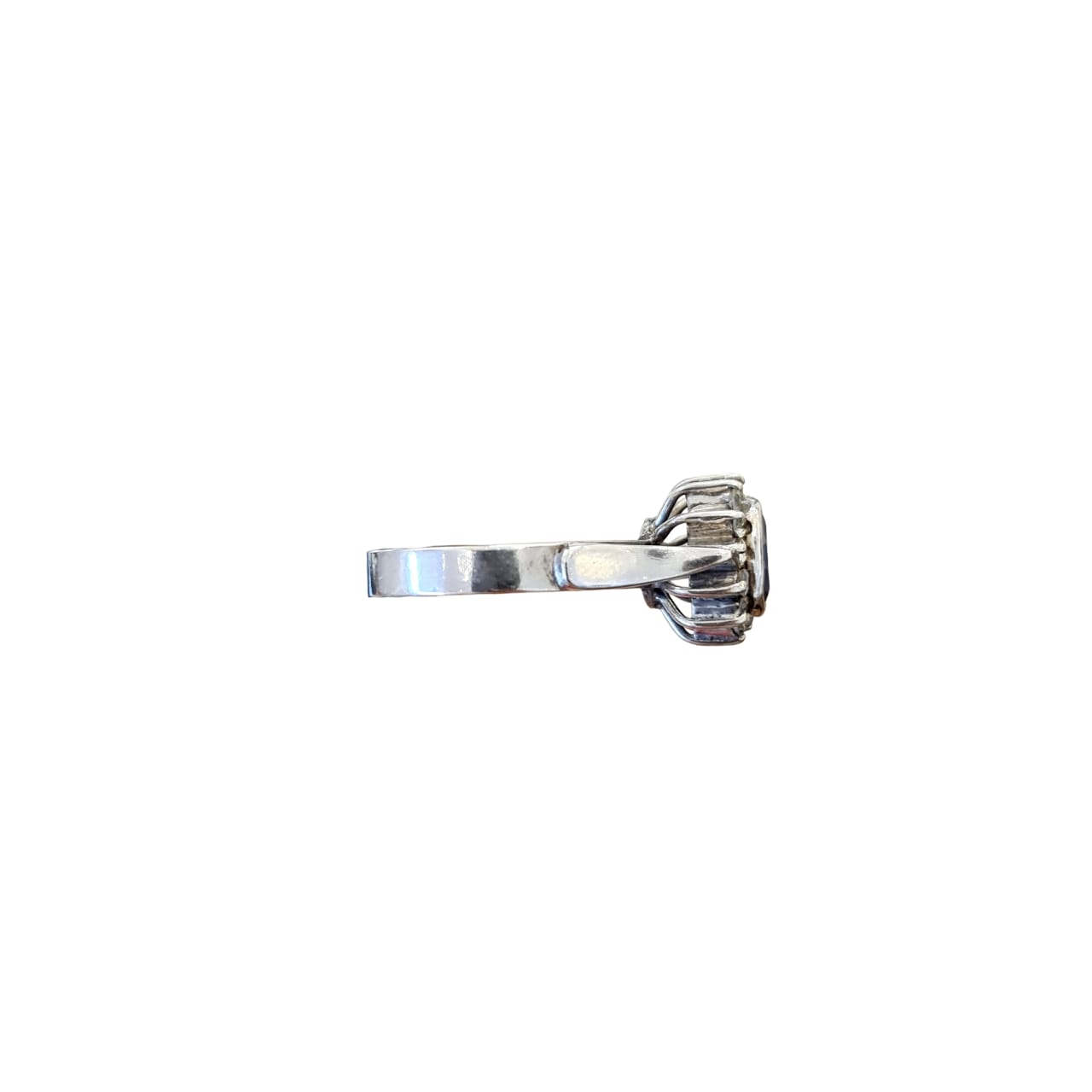 A silver flower ring featuring a single oval-shaped blue sapphire with a mixed cut sounds absolutely stunning! The oval shape offers a classic and timeless look, while the mixed cut adds an extra dimension of brilliance and sparkle to the gemstone.