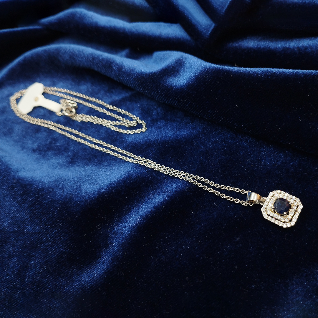 Handcrafted Bule Sapphire pendant(chain) with white gemstone